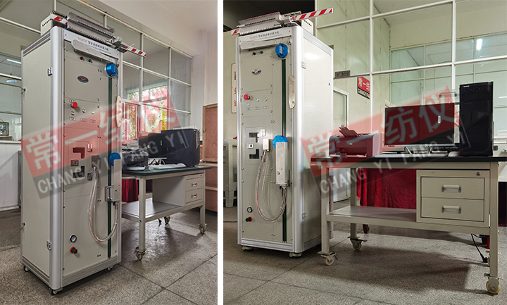 用于全自动测定单根纱线、化纤长丝的断裂强力、断裂伸长率、断裂强度、断裂时间和强伸曲线等物理指标。配备联想商用品牌计算机,使得数据的采集、计算、输出全部自动化。