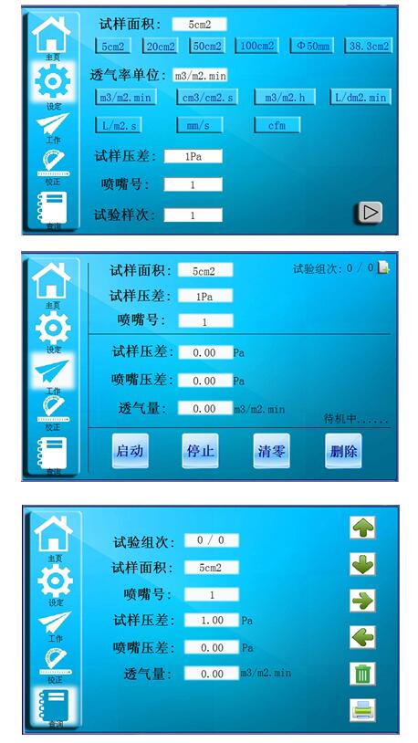 3、内置7种测试单位mm/s、m³/m².min、cm³/cm².s、m³/m².h、cfm、L/dm².min、L/m².s,测试单位可根据需求自由切换。