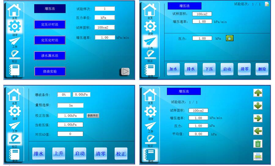 5、五种测试模式可选,增压法,定压计时法,定压定时法,扰曲松弛及渗水漏水法。内置新国标测试方法有自动评级功能。