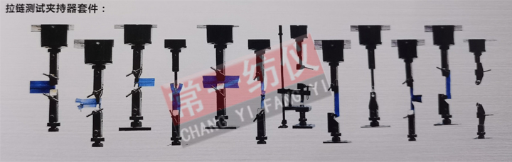 用于拉链的平拉、上止、下止、开尾平拉、插座移位、拉头拉片结合、拉头自锁及拉头抗张、抗扭等强力测试。